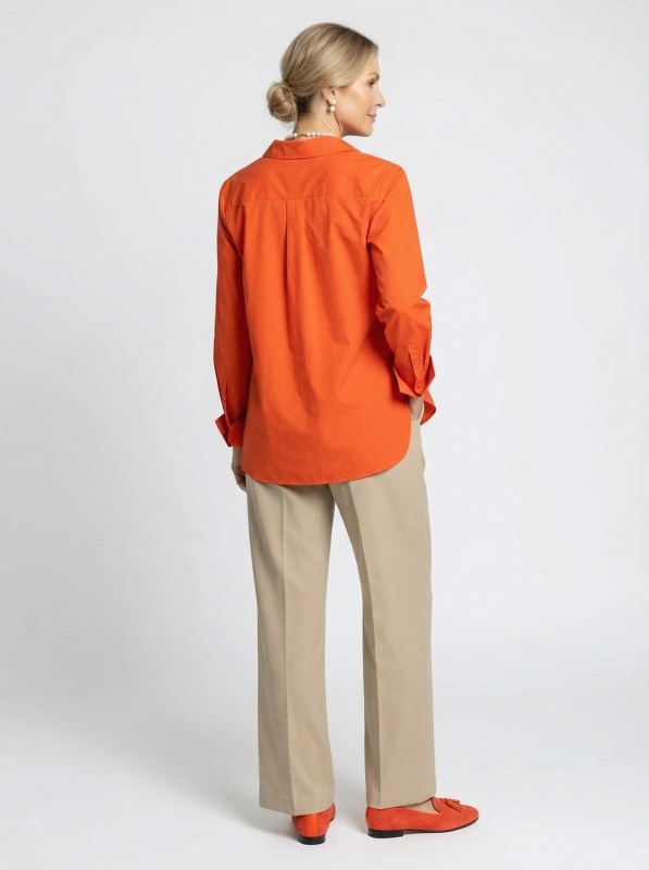 Die Bluse Lauren orange vereint zeitlosen Stil mit modernen Details und ist ein Must-Have für jede Garderobe. Mit ihrer schwingenden Weite bietet sie nicht nur Komfort sondern auch eine schmeichelnde Silhouette, die sich perfekt für verschiedeste Anlässe eignet. Die eingearbeiteten Taschen fügen ein praktisches Element hinzu, während die breiten Manschetten einen Hauch von Eleganz verleihen. Der klassiche Kentkragen rundet das Design ab und macht die Bluse vielseitig kombinierbar, sei es für ein professionelles Outfit im Büro oder einen entspannten Look in der Freizeit. Die Bluse Lauren ist ein perfektes Beispiel für funktionelle und stilvolle Mode.